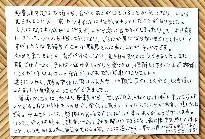 小顔 ビフォーアフター 2025.07.18 顎の長さ・大きさ調整。こちらは1回での変化。 通い続ける度にどんどん小さく短くなっていきます。 顎の長さ・大きさ調整。こちらは1回での変化。通い続ける度にどんどん小さく短くなっていきます。